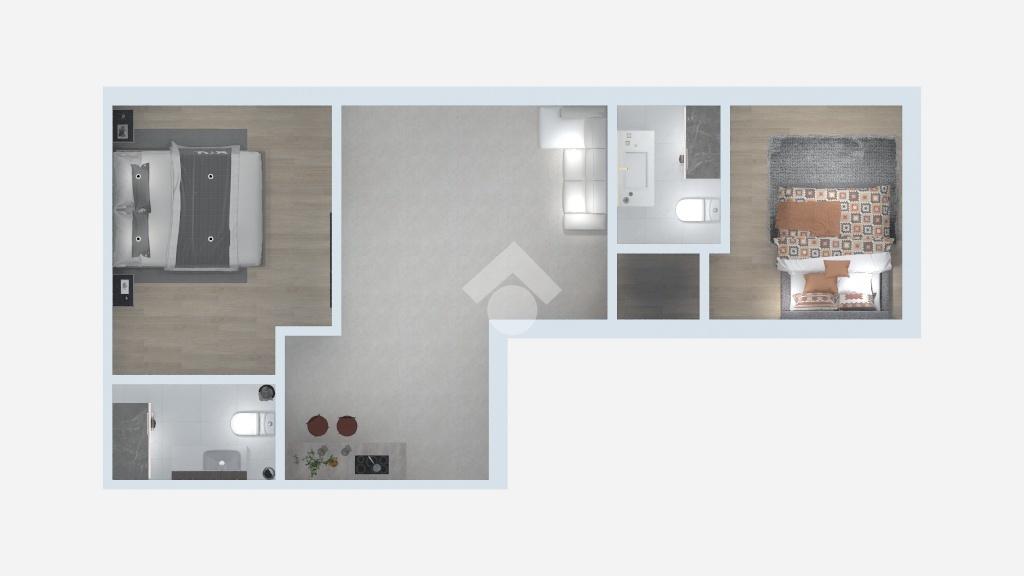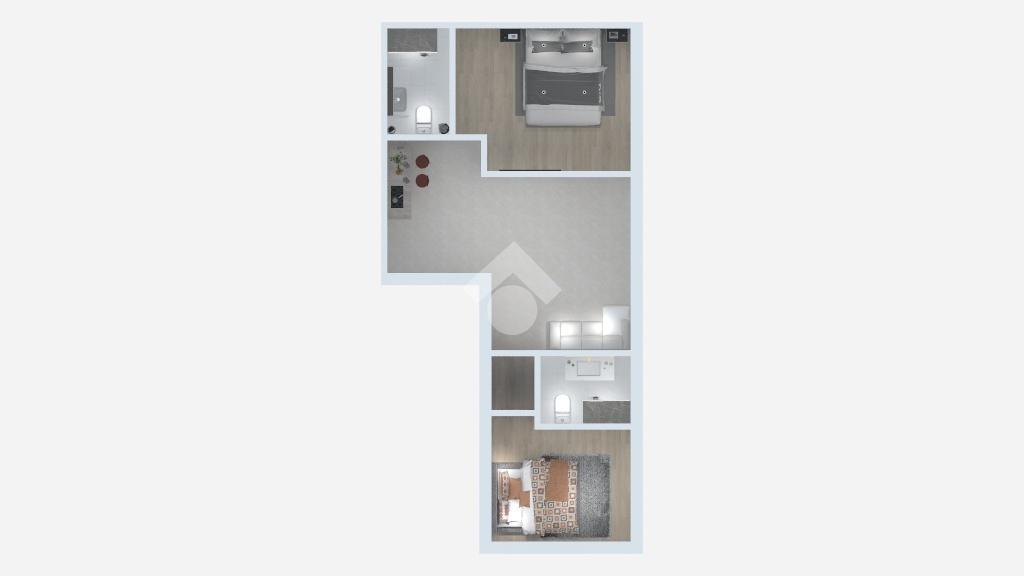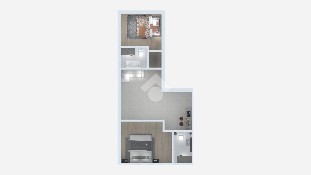 L’appartamento si compone di ingresso nel soggiorno con angolo cottura, camera da letto matrimoniale con bagno privato, cameretta e secondo bagno. La soluzione è caratterizzata da ambienti ben distribuiti e funzionali, ideali per chi cerca una casa moderna e pronta da abitare.