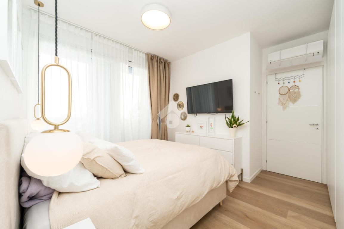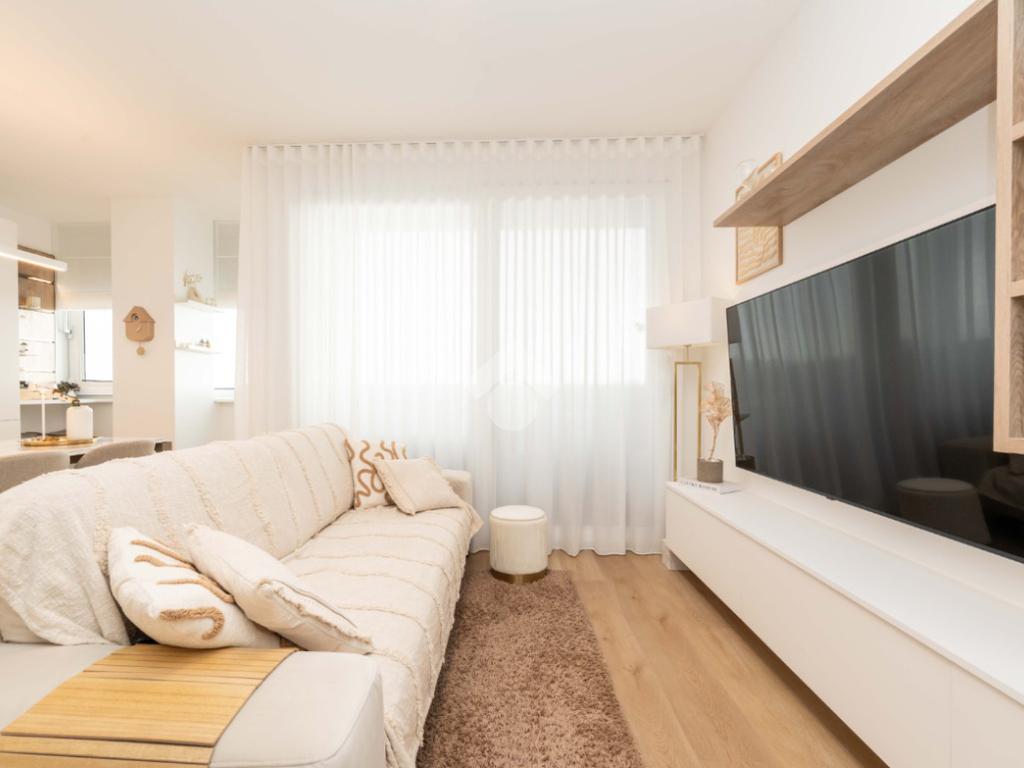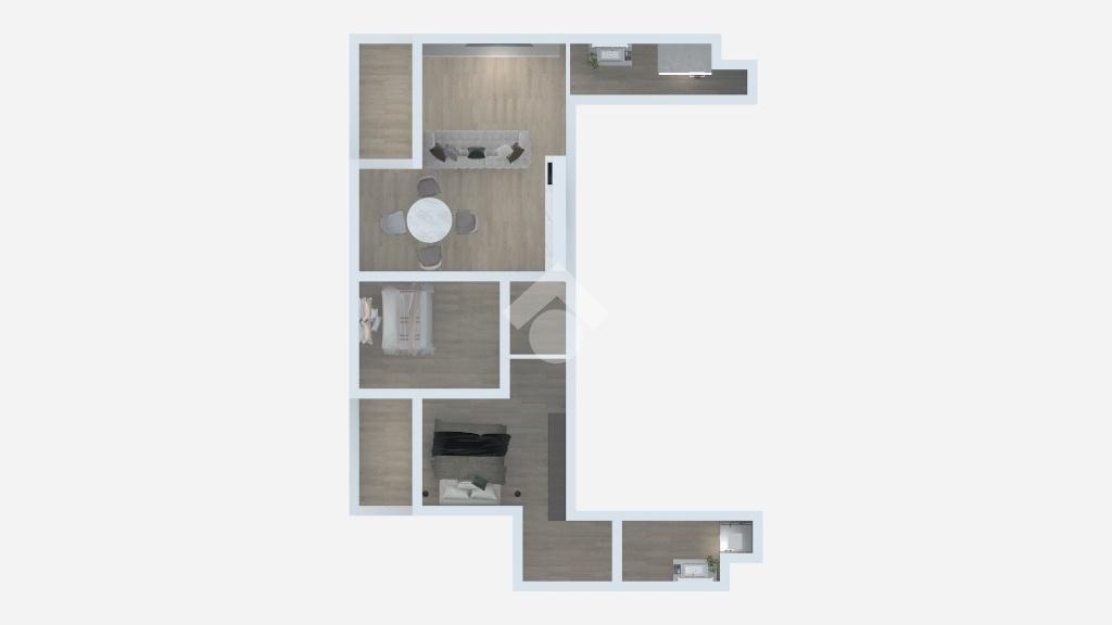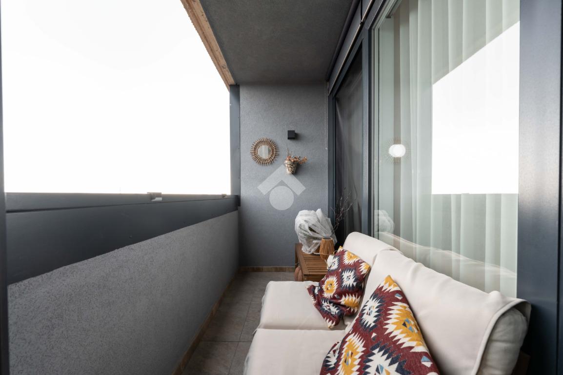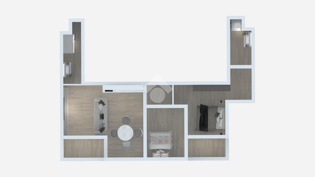 L’abitazione si compone di ingresso direttamente nel soggiorno, luminoso ed accogliente, con angolo breakfast ed accesso al primo balcone. La zona notte comprende una camera da letto matrimoniale con accesso al secondo balcone, una cameretta e doppi servizi,che garantiscono praticità e comfort per tutta la famiglia.